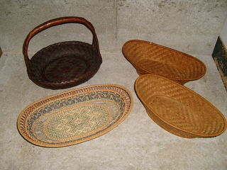 Décor floral pour ce miroir avec encadrement en osier. Bon état. 62X88