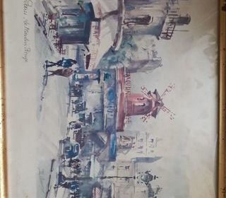 2 tableaux aquarelle Paris quartier montmartre et Paris moulin rouge de lucien Delarue peintre français . 30 euros pièce ou 50 euros les deux. Cadre à restaurer je crois que ce son