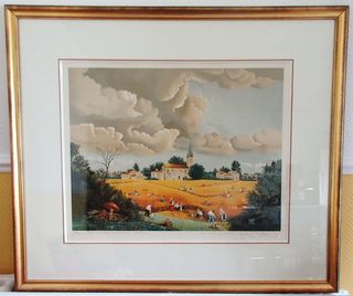 Raphaël TOUSSAINT . ART NAÏF Paysage vendéen dans les blés E.A Lithographie de format 55×75 cm, 1980. , dédicacé et signée par l'Artiste dans la marge du bas. Dimensions ave