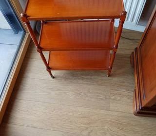 ETAGERE A ROULETTES, 3 PLATEAUX, DE COULEUR CHÊNE MOYEN DIMENTIONS EST DE 0,67 m X 0,245 m