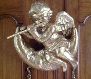 étagère en pin longueur :118 cm , largeur : 20,5 cm , moulure devant et 2 côtés , 2 supports moulurés :H:20cm largeur :15 cm . petit impact à l'arrière .