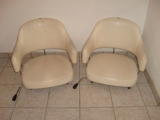 Deux fauteuils ancien de coiffeur en très bon état. Simili cuir blanc. Il était dans un ancien salon de coiffure homme et les deux était monté sur un système de rail. J'ai les
