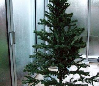 Vend grand sapin artificiel de 1m80 avec pied. Branches touffues. Bon état et carton d'emballage.