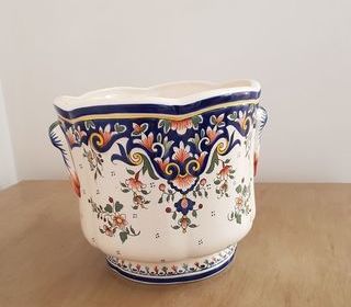 Cache pot ancien céramique de Rouen Diamètre int, 22 cm H 19,5 cm Fait main V: