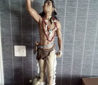 statues en résine de 61 et 63 cm de hauteur, avec fêlures 1 épaule et 1 jambe, amérindiens indiens d'amérique, guerriers chasseurs aigle fourrure 10€/1 ou 17€ le lot regard