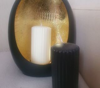 Photophore design noir et or très tendance qui assure une ambiance tamisée.(24H x 18l x 8 cm d épaisseur) - 25€ le Photophore et une bougie noire.(Jamais utilisé ni l'un ni l'a