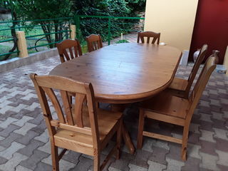Vend une grande table avec ses 6 chaises touts en bois en pin