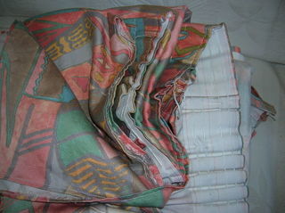vends à Reims, ne fais pas d'envoi 2 doubles rideaux en coton épais, couleurs variées, saumon, vert jaune etc. à ruflette large, largeur 2,06m hauteur 2,36m 2 housses coussins 4