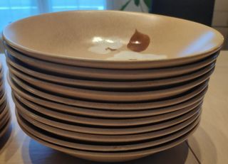 ATTENTION, PRIX EN BAISSE ! Collection Vintage Moulins des Loups 8 assiettes plates (dont 1 un peu ébréchée) diamètre 24 cm 10 assiettes à soupe (dont 3 très légèrement ébréchée