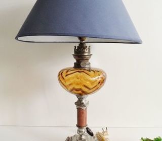 BEL OBJET ART NOUVEAU STYLE EMPIRE QUI DOIT DATER DE LA FIN DU XIXème DEBUT XXème SIECLE ANCIENNE LAMPE A PETROLE SUR PIED QUI SEMBLE AVOIR ETE ELECTRISEE VERS LES ANNEES 1930/194