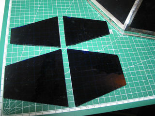 Lot de 4 verres pour grande lampe PIROUETT de salon. 2 bleu profond en face + 2 au dos. Voir photo . Frais de port et d'emballage 5 € pour la France VISIBLE A MARSEILLE METRO ST