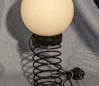 Lampe ressort style INGO MAURER vintage 1970/80 en très bon etat. Voir photos. Lorsque Ingo Maurer dessina la Bulb en 1980, il reprit une forme similaire à celle de sa lampe de ta