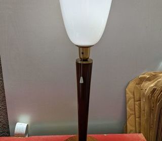 JOLIE LAMPE STYLE MAZDA UNILUX art déco vintage 1930 acajou. Avec inter à tirette et tulipe opaline en parfait état de condition. Fonctionne parfaitement douille grosse vis. H 63