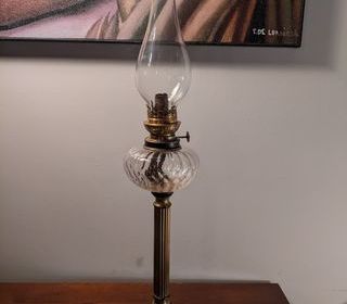 Grande lampe à pétrole époque Napoléon III verre ou cristal + laiton en parfait état de marche. Hauteur 65 cm. Un petit choc sans gravité a la base du pied, voir photos. RÉPONSE