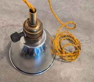 Abat jour tulipe en aluminium poli H 11 cm ø13 cm trou 28 mm. Avec douille à interrupteur rotatif. en très bon état. voir photos. Lampe Gras Ravel ou autre design industriel. RÉP
