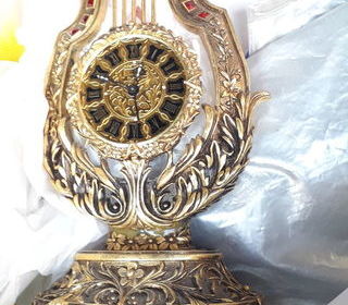 À vendre cette pendulette de la marque Lancel en forme de lyre décorée de pierres rouges façon rubis. Besoin d'une révision car ne fonctionne pas. Regardez bien les photos. Vous a