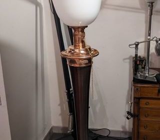 Lampe de bureau art déco MAZDA époque 1930 cuivre et patine bois couleur palissandre et en très bon état. D'époque art nouveau art déco vers 1930. Hauteur 78 cm diam 25 cm. Avec l