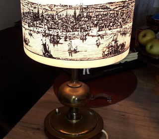 À vendre une très belle lampe de bureau années 1950 en verre opaline représentant la ville de Paris et Bordeaux d'époque. La structure est en laiton. Dimensions : Hauteur de l