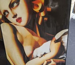 TABLEAU REPRODUCTION TAMARA DE LEMPICKA toile montée sur châssis LA FILLE A LA COLOMBE 70x50 cm impression sur toile. VOIR PHOTO DANS L'ETAT. Frais de port et d'emballage 10 € pou