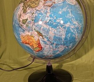 Grosse lampe globe terrestre lumineux mappemonde veilleuse diamètre 30 cm hauteur 47 cm en parfait état. Invitation au voyage, ce globe terrestre offre une grande richesse de dé