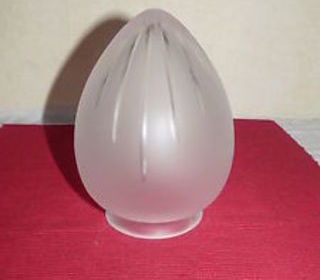 1 une Tulipe ?uf Satine art déco verre ciselé Taille Soleil H.168 D.120 pour griffe de 80 mm. lampe lustre luminaire applique RÉPONSE UNIQUEMENT PAR TEL Frais de port et d'