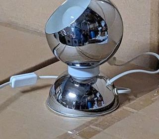eyeball Goffredo REGGIANI (Né en 1929) Lampe à poser eyeball en métal chromé composé d'un socle soutenant une sphère maintenue sur la partie inférieure par un aimant. Travail des a