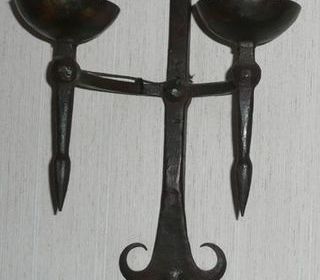 Ensemble APPLIQUES MURALES - APPLIQUE murale double avec flèche, style rustique, hauteur 60 cm, largeur 33 cm PRIX 50 € - 2 APPLIQUES murale simple avec flèche, style rustique