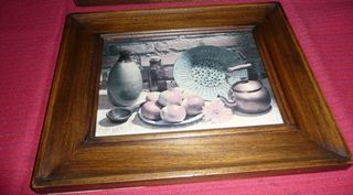 Lot de 2 CADRES "NATURE MORTE", encadrement bois, dimensions : 29,5 cm x 25 cm, Port en sus en cas d'envoi