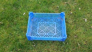 9 caissettes en plastique bleues empilables - longueur : 40 cm - largeur : 29,5 cm hauteur : 12 cm = 3 euros pour une, et 1 caisse à bières bordeaux VINTAGE = 6 euros - 2 caiss