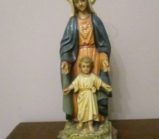 Statue Notre Dame de l'Espérance et l'Enfant Vintage - hauteur 14 cm x diamètre 14 cm = 30 EUROS (photos supplémentaires sur demande) et divers Christ et cadres religieux et ch