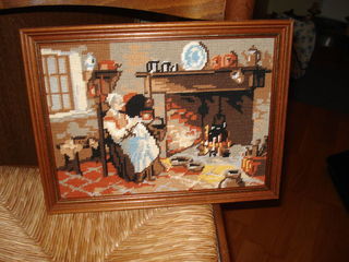 Cadre en canevas - très beau dessin- grand-mère devant la cheminée contact : a2009