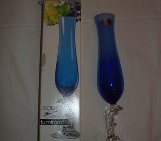 très joli vase bleu avec pied dauphin transparent contact : a2018