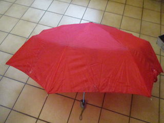 parapluie rouge , une baleine cassée qui se répare, fonctionne encore peut être pour récupération du tissus de nylon ou autre bricolage
