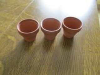 hauteur / profondeur : 5 cm - diamètre : 5,5 cm - en terre cuite 5 euros les 3
