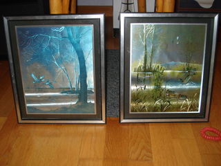 2 très beaux cadre tour argenté paysage avec canards et autres contact : a2009