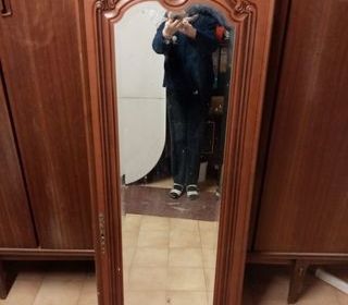 Vends miroir biseauté, fixé sur porte d'armoire, pouvant faire un miroir en pied