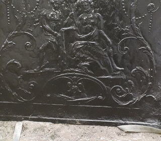 Plaque fond cheminée lorraine fonte larg 98cms haut 98cms épaisseur 2cms bon état