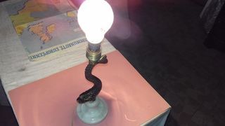 Lampe poisson en bronze ,posé sur un socle en marbre. H. 25 cm ; Diamètre 8,5 cm. sans abat-jour . En très bon état.