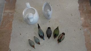 Ensemble de canards et cygnes 2 en faience et 6 en résine. Très bon état.