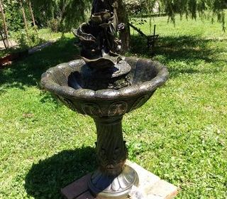 À vendre, fontaine de jardin en résine, comprenant une statue de femme avec des détails floraux. L'ensemble est en excellent état ( toujours dans son carton ) et comprend une base