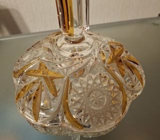 Bonbonnière couleur transparente et caramel, ciselée, très bon état. Prix 20e