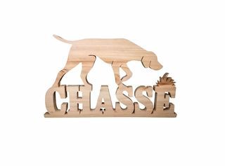 Je vends cet ouvrage en bois chantourner représentant un chien de chasse. - Type de produit : Chantournage bois - Matière : Bois - Thème : Chasse - Taille: 28/22/8 cm État neu