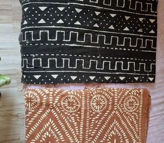Je vends des tissus africains (épais, laineux) comme suit : Trois tissus (le noir, le marron clair et le marron foncé) ont ces dimensions Largeur 1 m 10 / Longueur 1 m 69 (