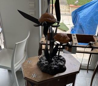 Propose une très belle lampe de grande dimension posé sur des tiges en fer 3belle tortues éclairées Voir photo