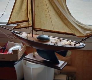 Voilier décoratif --Couleur noire et marron - Voiles blanche - 50 C Long - 50 Cm Hauteur Tres bel objet sur pied--