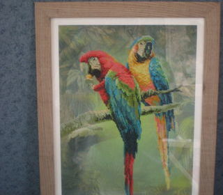 Tableau points comptés couple de perroquets Réalisé fait mains par madame Encadré 44cm x 34 cm NEUF prix 40€ Envoie possible En ligne disponible