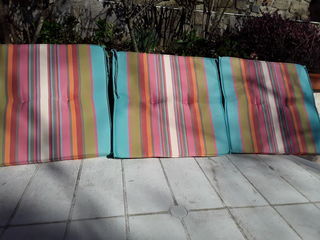 Tableau tapisserie canevas fait main brodé avec laine dme/colbert coton , représentation d'une scène dans décor champêtre , encadrement bois brut