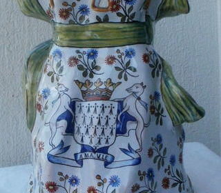 VASE en faïence de DESVRES Rebords dentelés et ajourés, forme originale Blason "A ma vie" Armoirie héraldique BRETAGNE Estampille de Jules VERLINGUE et vase numéroté Hauteur