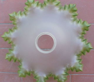 Suspension verre blanc opalescent et et ses rebords dentelés de couleur verte Plafonnnier, abat,jour vintage ou rétro diamètre 26.5 cm Très bon état Envoi par colis, entr