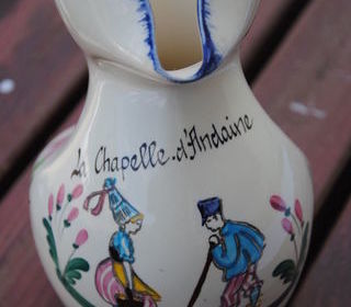 Bonjour, je vends mon beau et ancien pichet de chez STR, décor Normand de la chapelle d'Andaine, peint à la main, sa très belle forme fera merveille sur votre table, il est en pa